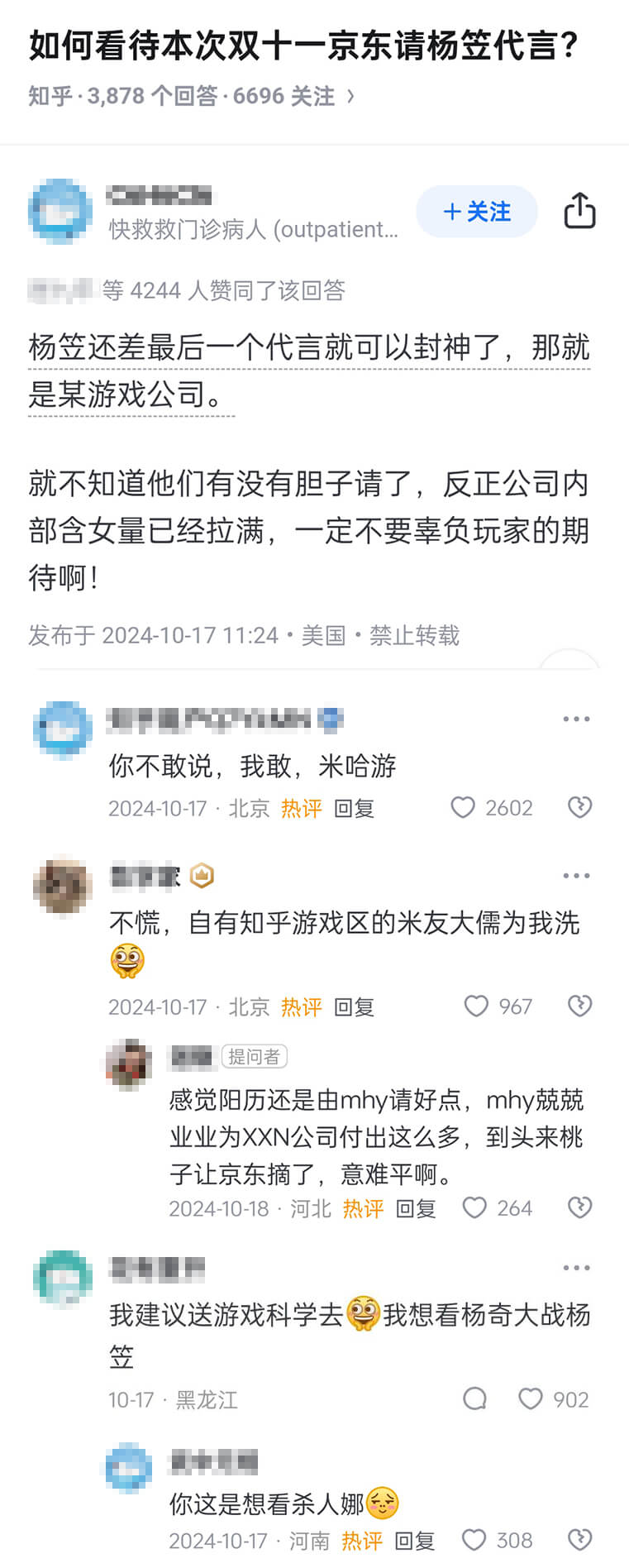 这条回答获得了近四千人点赞,回答里只是在暗示米哈游,但没直说,评论区:「你不敢说,我敢,米哈游」,也获得了两千多人点赞。